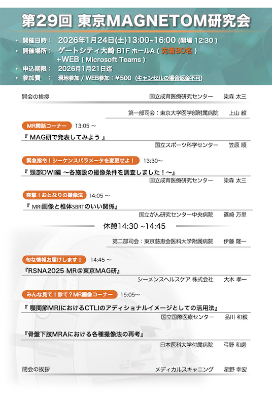 第29回 東京MAGNETOM研究会を2026年1月24日(土)13:00〜 開催します!