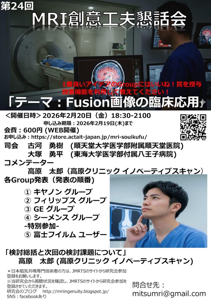第24回 MRI創意工夫懇話会 開催のご案内 ― 5メーカー装置によるFusion画像の実践的工夫を共有 ―