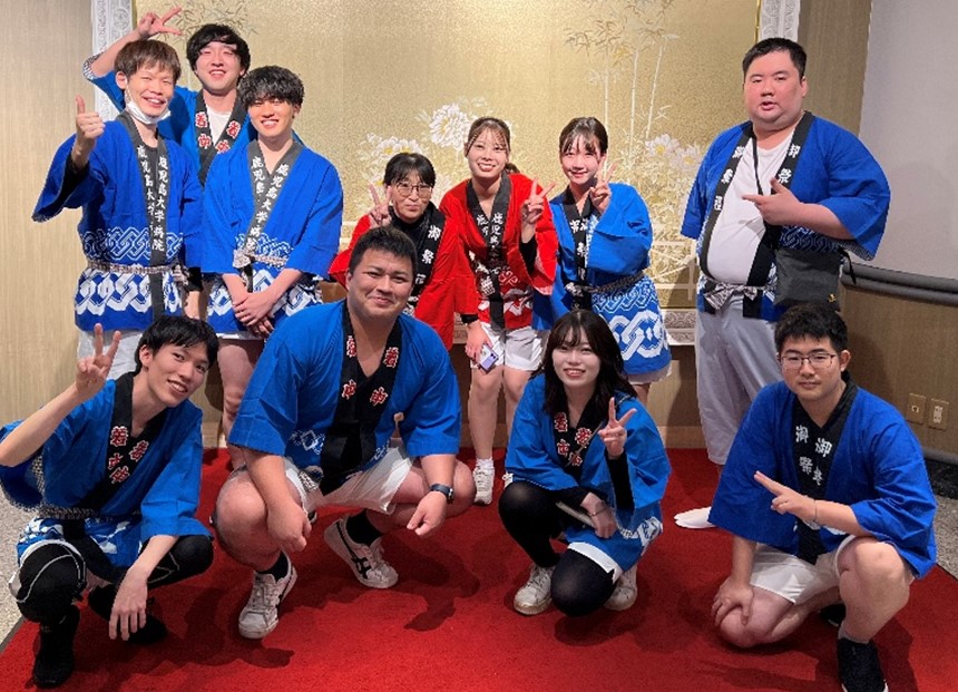 Fig.1 鹿児島県最大のお祭りであるおはら祭で後輩たちと(筆者は前列左から2番目)