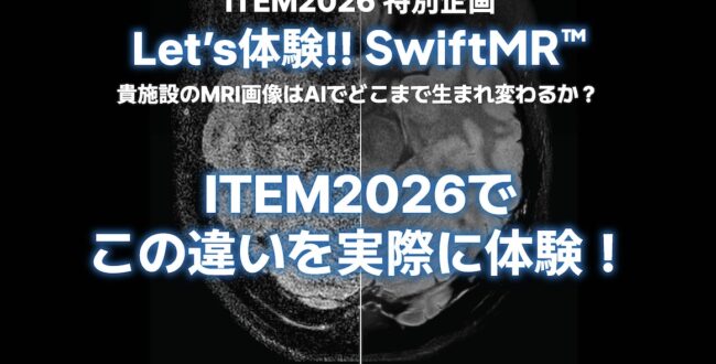 あなたの施設のDICOMが生まれ変わる。「SwiftMR™」自施設データ処理体験 日々の臨床現場で、SNR不足に悩み、スライス厚と撮像時間の狭間で葛藤するすべてのMRI探究者の皆様へ。「あなたの施設のあの … 続きを読む ITEM2026 特別企画 Let’s体験!! SwiftMR