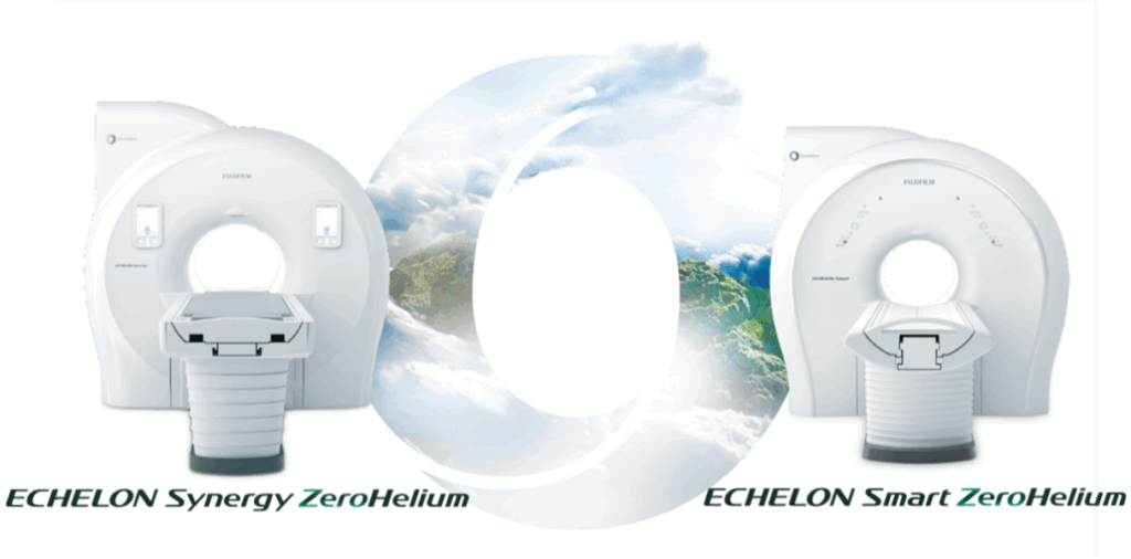 「ECHELON Synergy ZeroHelium」は、「ECHELON Synergy」にZeroHelium磁石を搭載した液体ヘリウムを一切使わないMRIシステムの呼称。販売名:MRイメージング装置 ECHELON Synergy (医療機器認証番号: 305ABBZX00004000)