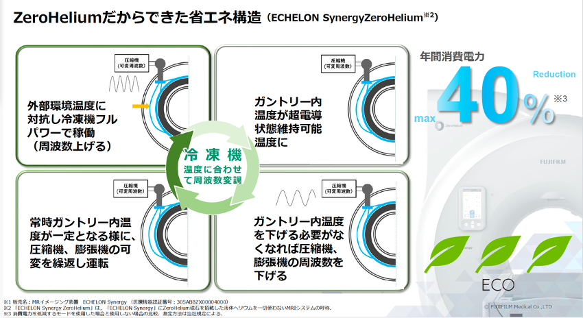 また,ヘリウムを使用しないからこそ,冷凍機の温度に合わせて周波数を変調し,電気代を約40%も節約できるそうです.最近のエアコンが室温に合わせて冷やす度合いを自動で変えているのと同じことを冷凍機で行なっているそうです.確かに最新のエアコンの方が電気代が安いですもんね!